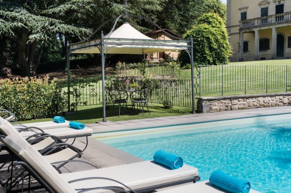 The villa is encircled by a park, approximately 4000 meters squared, with secular plants, an ancient sink and a swimming pool with a breathtaking view of the valley below (12x6 m) in serene stone.