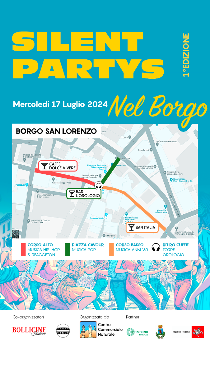 A musical event in Piazza Cavour and Corso Matteotti where participants will be provided with headphones to listen to various music genres!