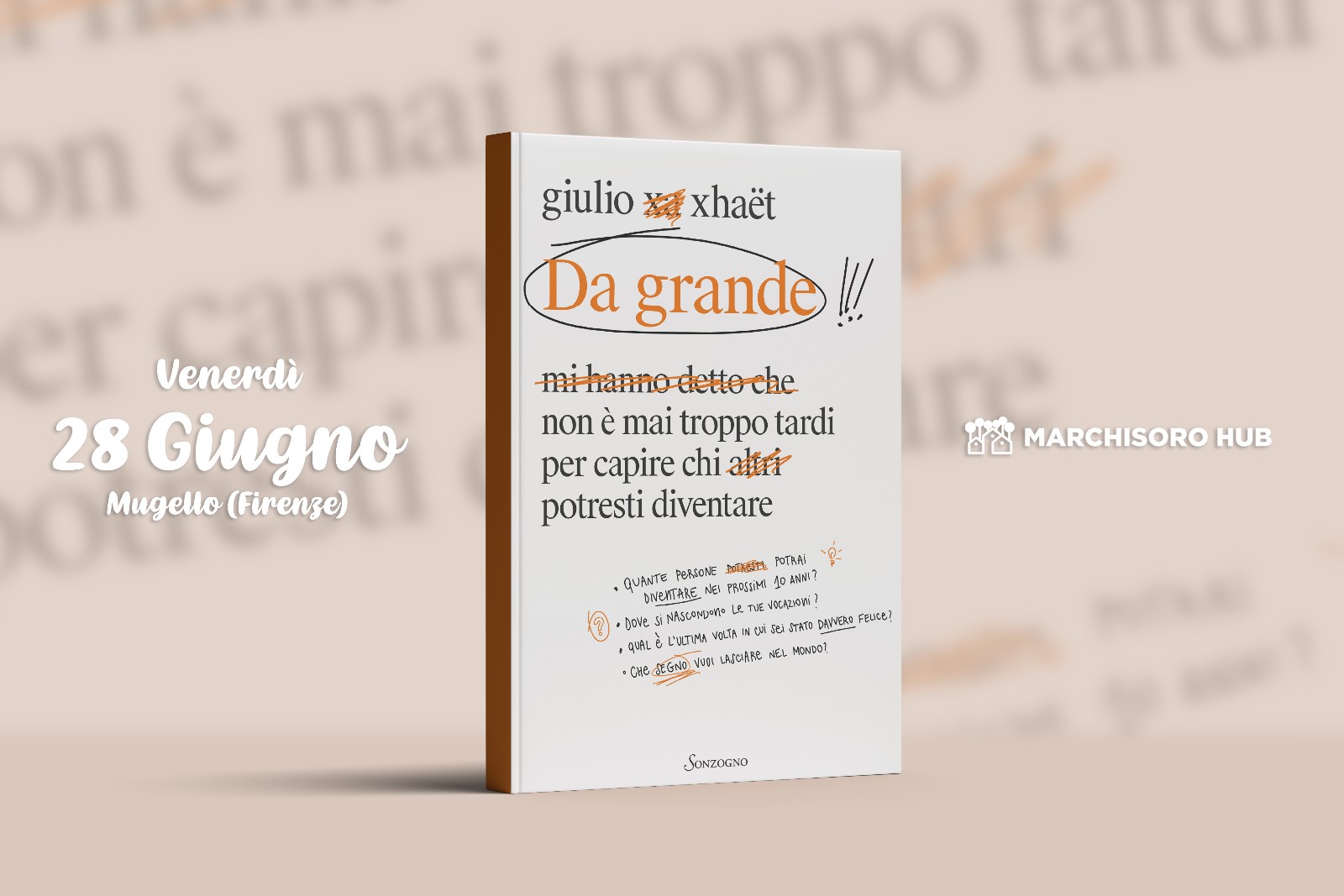 - Giulio Xhaet on Friday, June 28th presenting "Da grande"