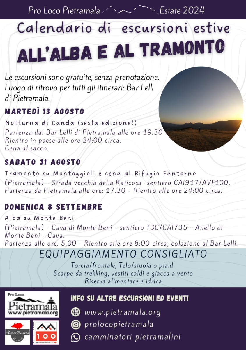 Departure from Pietramala at: 17:30 - Return at approximately 24:00 - September 8th