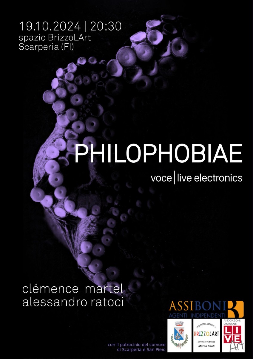 Progetto artistico a quattro mani, PHILOPHOBIAE lega una cantante e artista di formazione lirica e contemporanea, Clémence Martel e un compositore e performer di live electronics, Alessandro Ratoci.