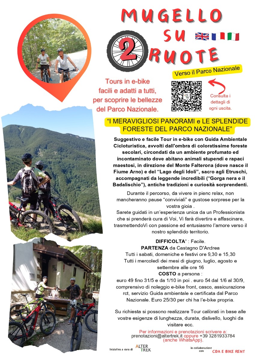 Enchanting and easy e-bike tour with a Certified Environmental Cycling Guide, wrapped in the shade of colorful ancient forests, surrounded by a fragrant and pristine environment where splendid animals and majestic birds of prey dwell, heading towards Mount Falterona (where the Arno River originates) and the “Lake of the Idols,” sacred to the Etruscans, accompanied by incredible legends (“Gorga nera and il Badalischio”), ancient traditions, and surprising curiosities.