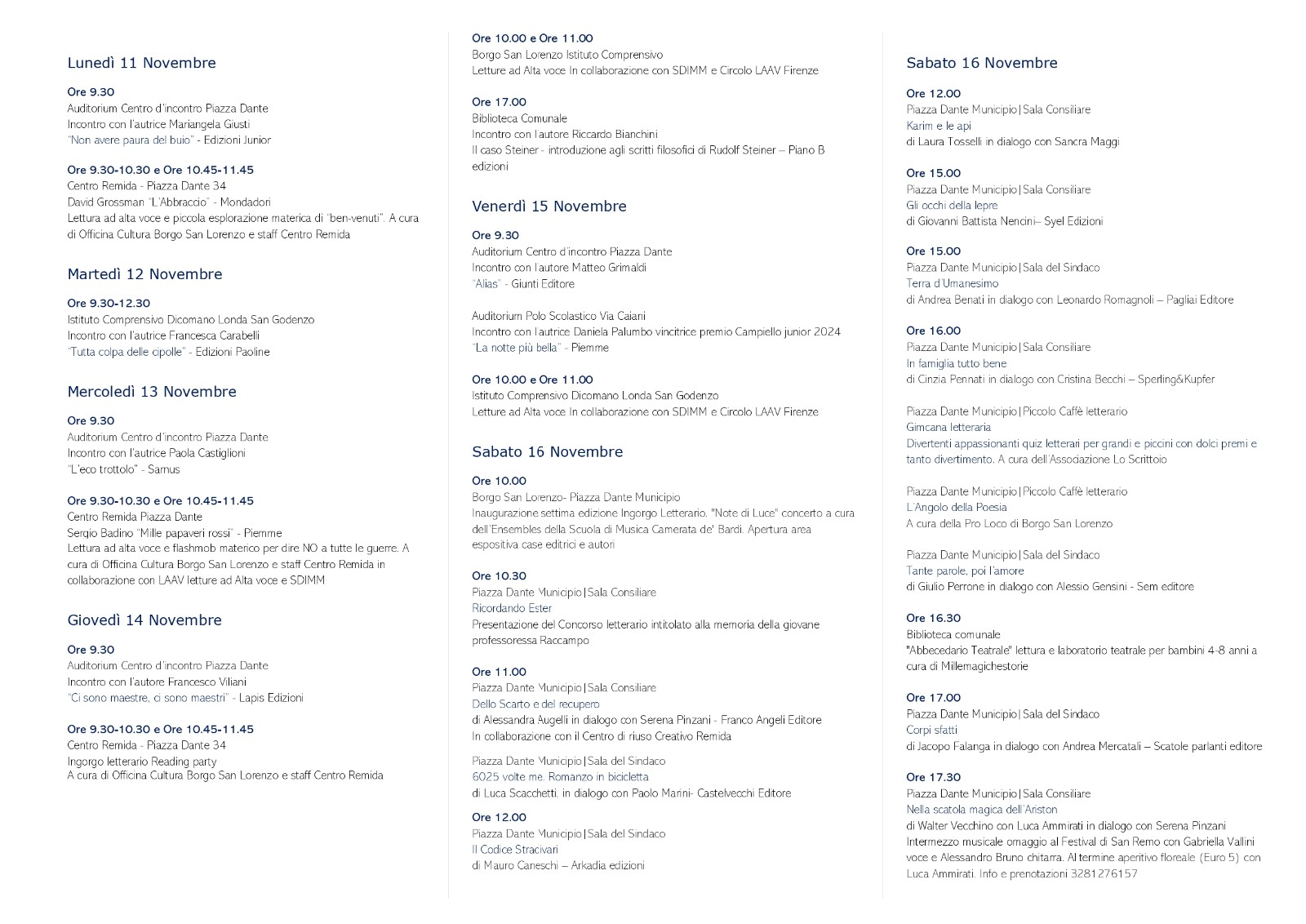 From 11th to 17th/11 - INGORGO LETTERARIO "La Luce" / Book and Authors Festival