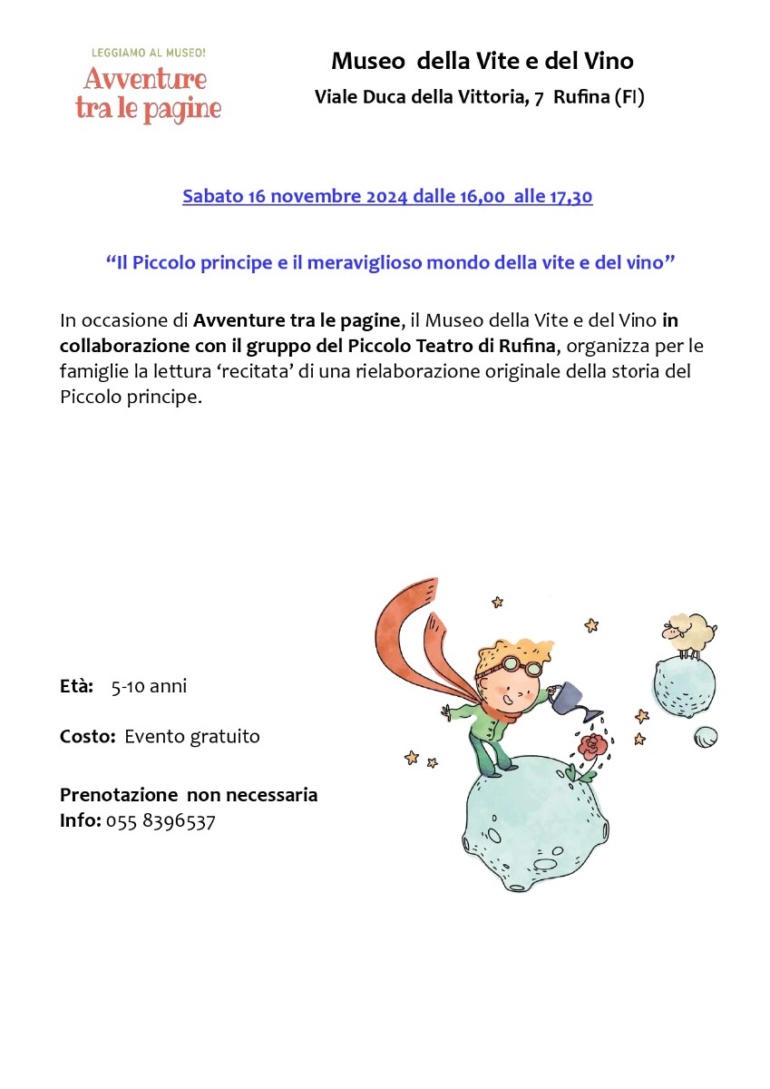 - Museo della Vite e del Vino- Rufina ‘The Little Prince and the wonderful world of vines and wine’.