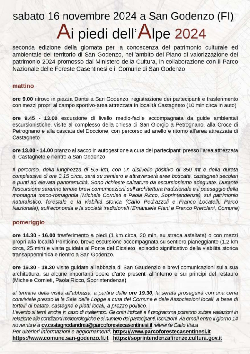 Accompanied hike along the Castagneto Valley, guided visits to the Church of San Giorgio in Petrognano, the Bridge of Cicaleto, the Abbey of San Gaudenzio and other events dedicated to the history, art, traditions and landscape of San Godenzo and its territory.