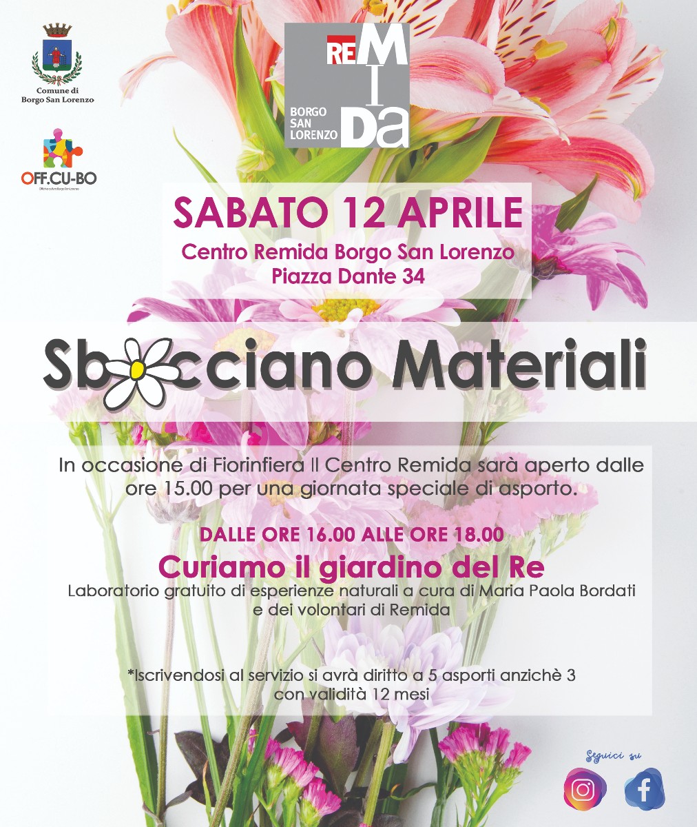 On Saturday 12 April, on the occasion of Fiorinfiera, the Remida Centre in Borgo San Lorenzo will be open to the public with the following initiative:
