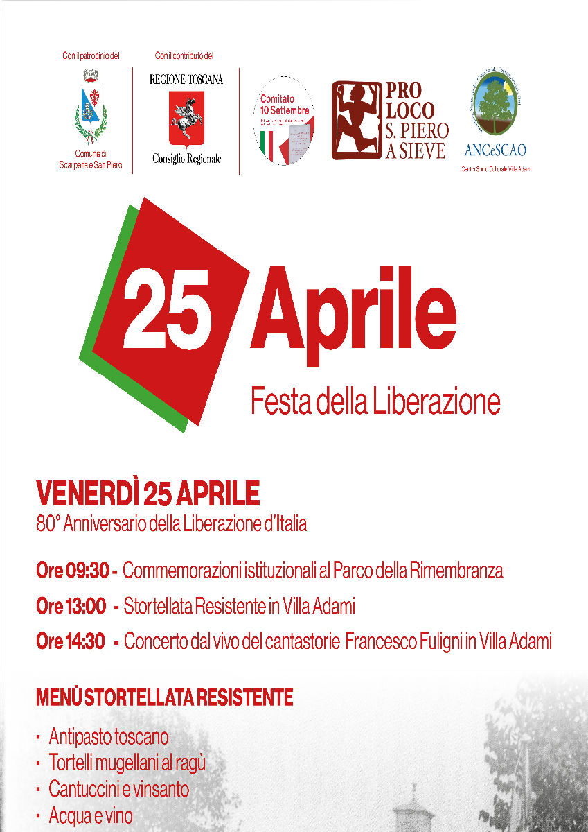Celebrations of the 80th Anniversary of the Liberation of Italy on 25 April 2025, organised by the 10 September Committee of the Proloco di San Piero a Sieve and the Municipality of Scarperia and San Piero