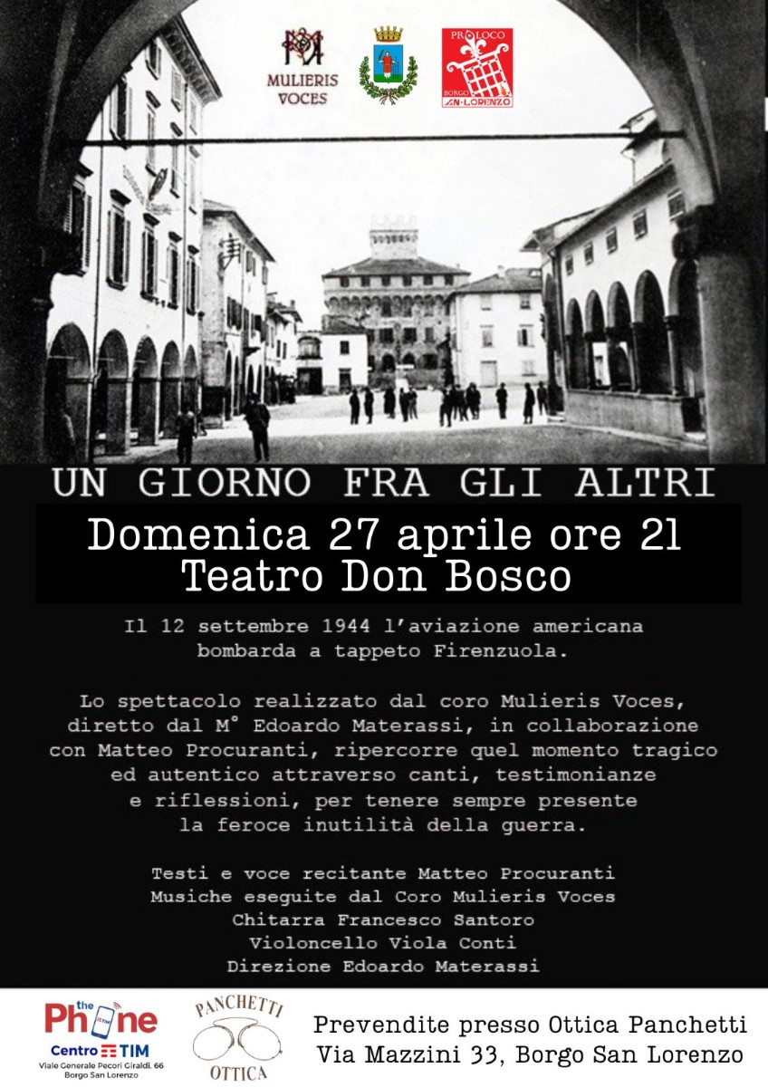 On Sunday 27 April at 9.15 p.m. at the Cinema Teatro Don Bosco in Borgo san Lorenzo, an emotional event will be held in memory of the devastation that hit our territory during the Second World War.