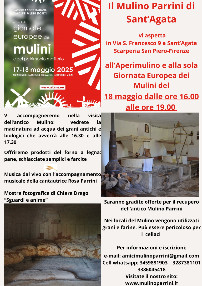 Info: amicimulinoparrini@gmail.com / 3459881903 - 3287381101 - 3386045418 / www.mulinoparrini.it