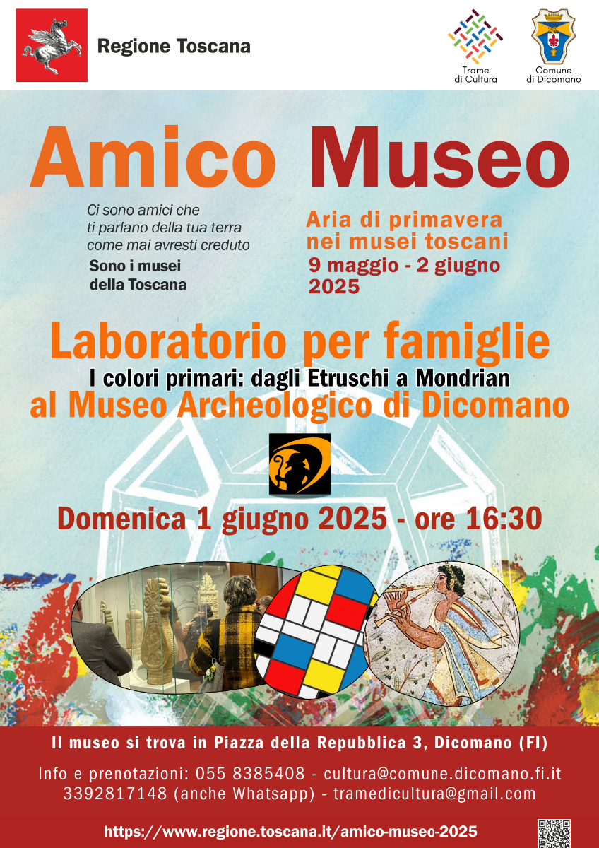 In occasione di Amico Museo 2025, il Museo Archeologico di Dicomano ha deciso di organizzare un laboratorio per famiglie (con bambini/e 6-11 anni) incentrato sui colori primari.