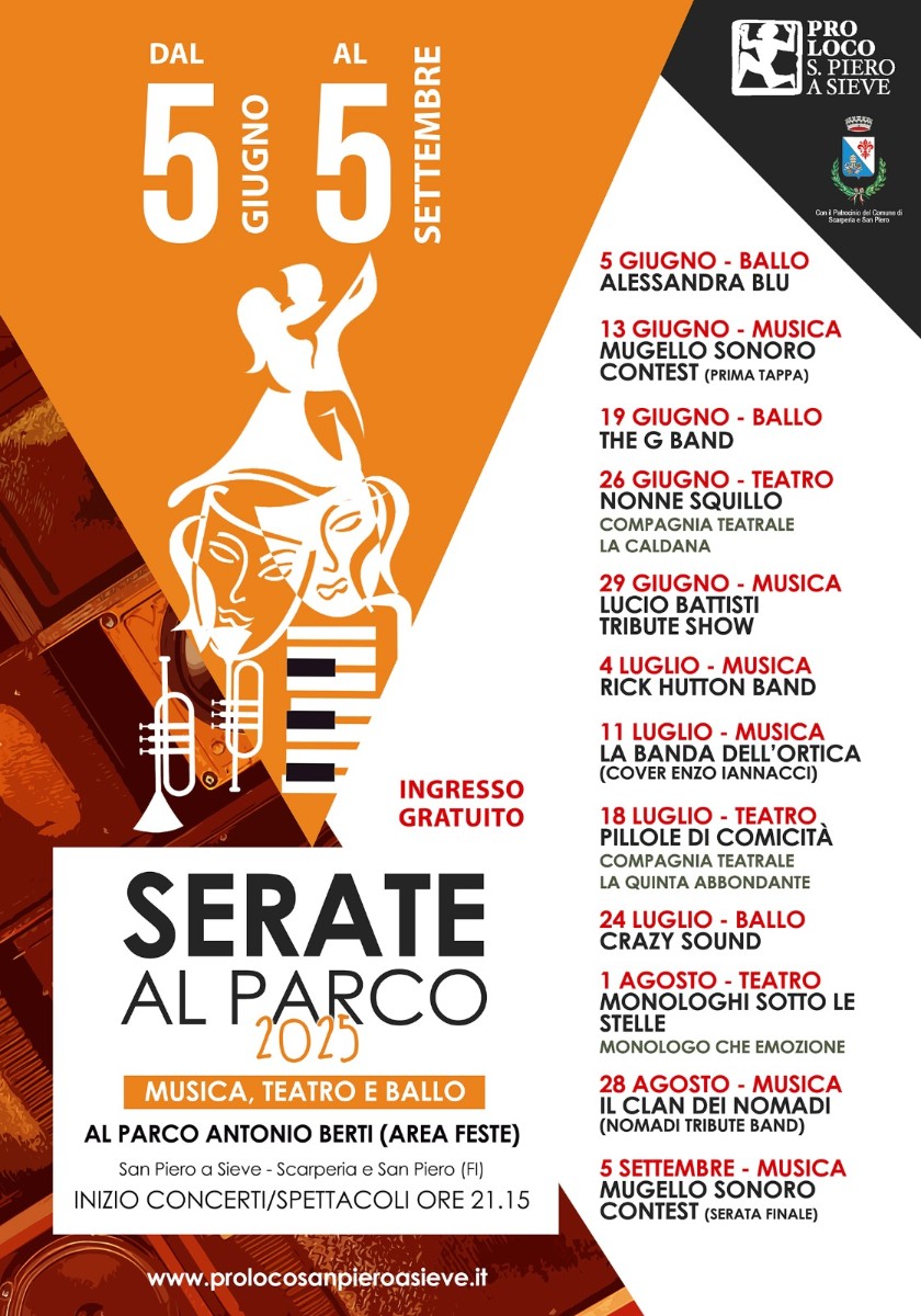 Musica, Teatro e Ballo al Parco Antonio Berti (Area Feste) a San Piero a Sieve dal 5 Giugno al 5 Settembre 2025