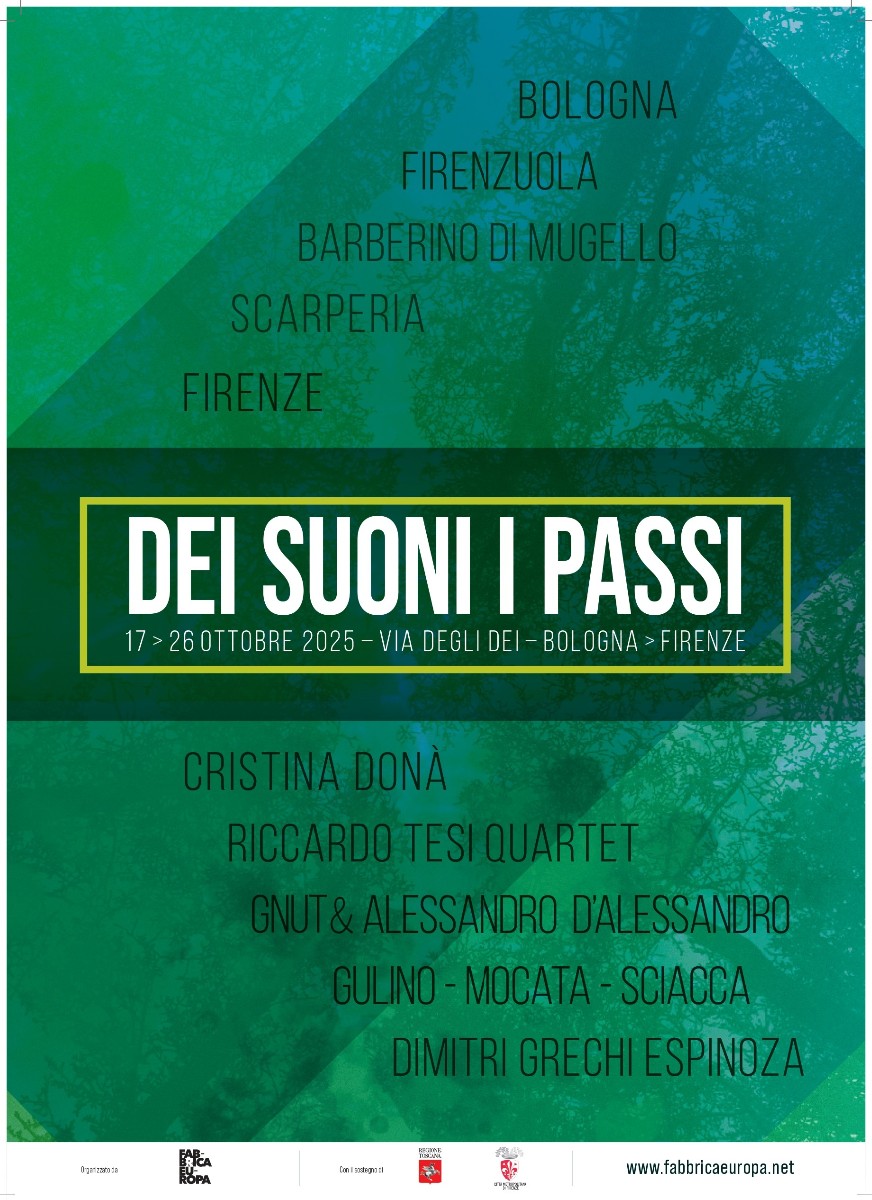 Il festival di musica e parole organizzato da Fondazione Fabbrica Europa con il sostegno di Città Metropolitana di Firenze e Regione Toscana. DEI SUONI I PASSI è il progetto dedicato al rapporto tra musica e natura nato nel 2018 con l’obiettivo di raccontare, far scoprire e mettere in connessione “a passo lento” i territori dell’Appennino Tosco-Emiliano – le cosiddette “zone interne” – seguendo l’evocativa Via degli Dei.