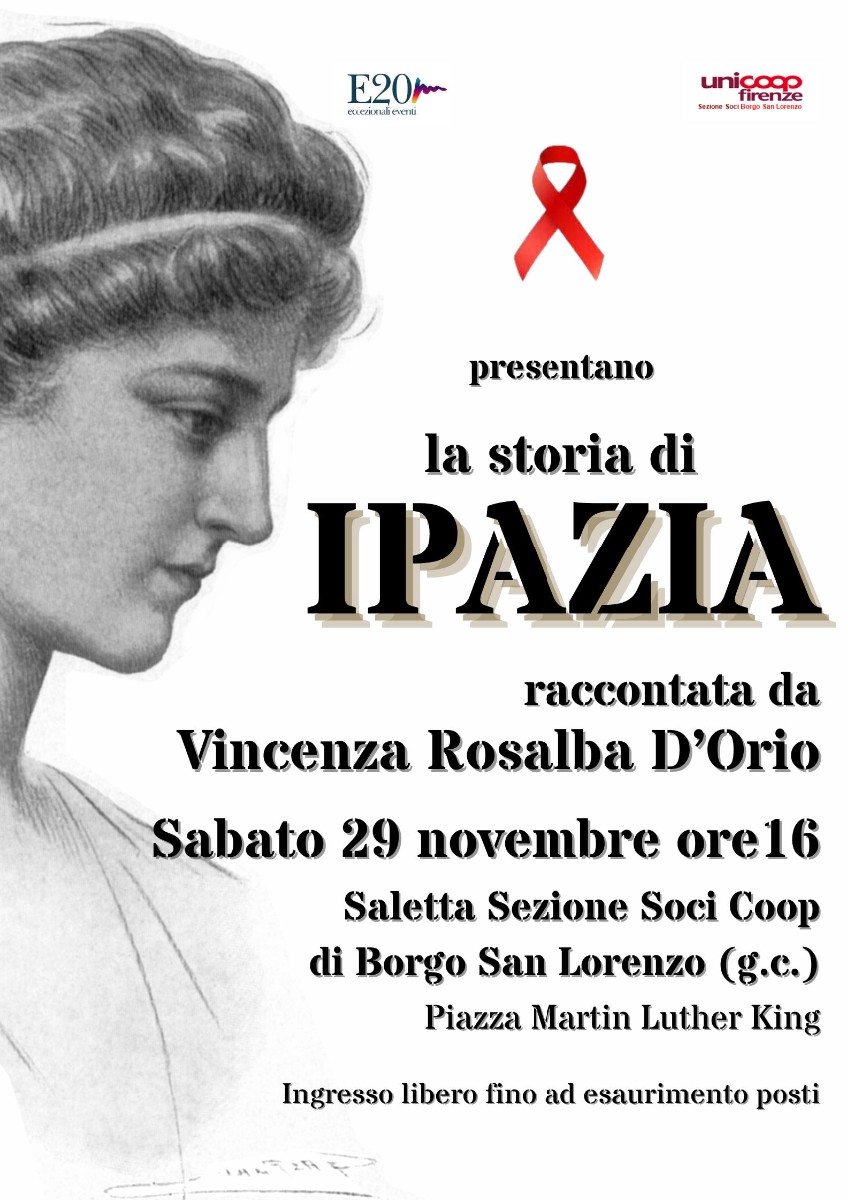 Sabato 29 novembre, alle 16, presso la Saletta della Sezione Soci Coop di Borgo San Lorenzo, all'interno del Centro Commerciale Mugello, Vincenza Rosalba D'Orio racconterà la storia di Ipazia, matematica, astronoma e filosofa greca vissuta a cavallo tra IV e V secolo, e la sua tragica fine.