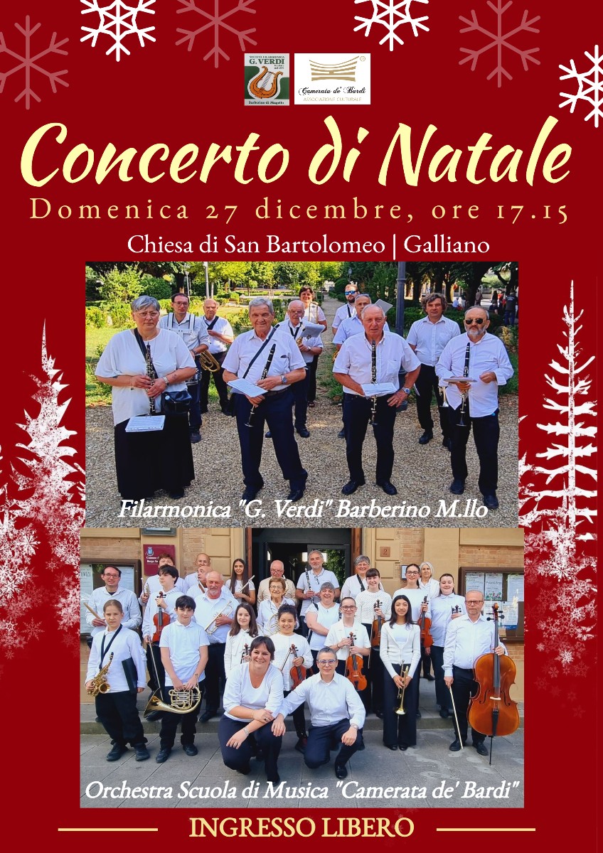 Protagonisti della serata saranno la Filarmonica “G. Verdi” di Barberino di Mugello e l’Orchestra della Scuola di Musica “Camerata de’ Bardi”, che uniranno esperienza e giovani talenti in un programma ricco di emozioni. Le musiche natalizie e i brani della tradizione offriranno un’atmosfera calda e coinvolgente, capace di accompagnare il pubblico verso la conclusione delle festività con armonia e gioia.