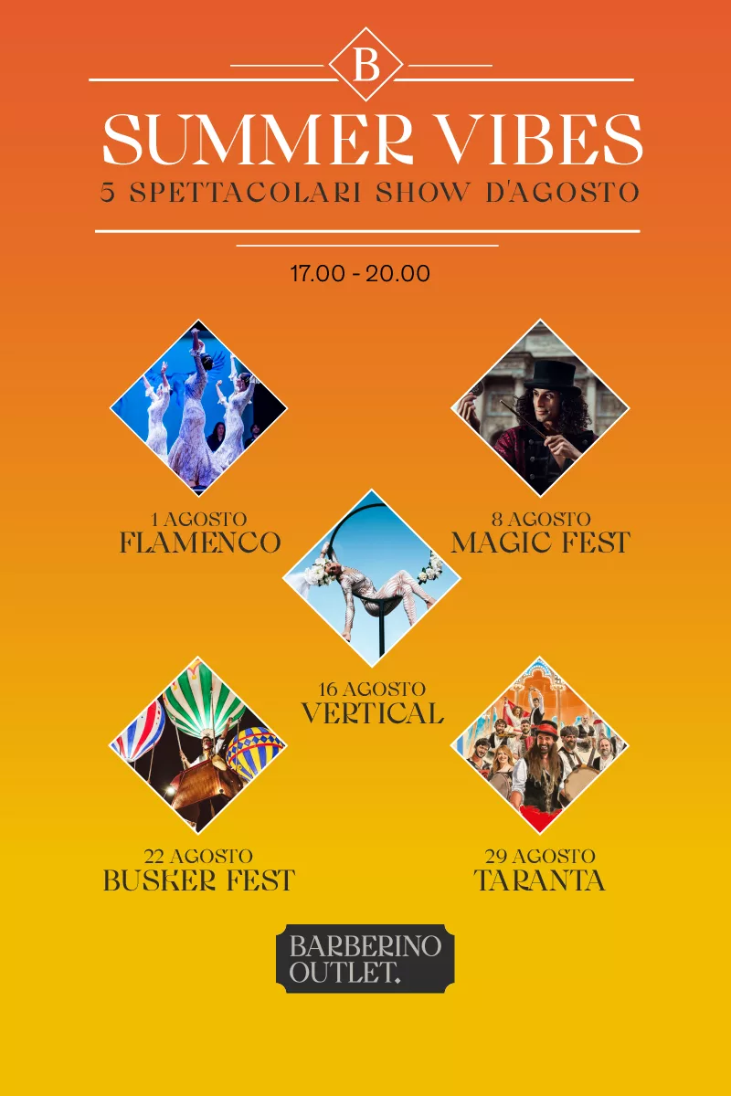 In August, five unmissable shows await you at the Barberino Outlet for a day of shopping filled with fun.