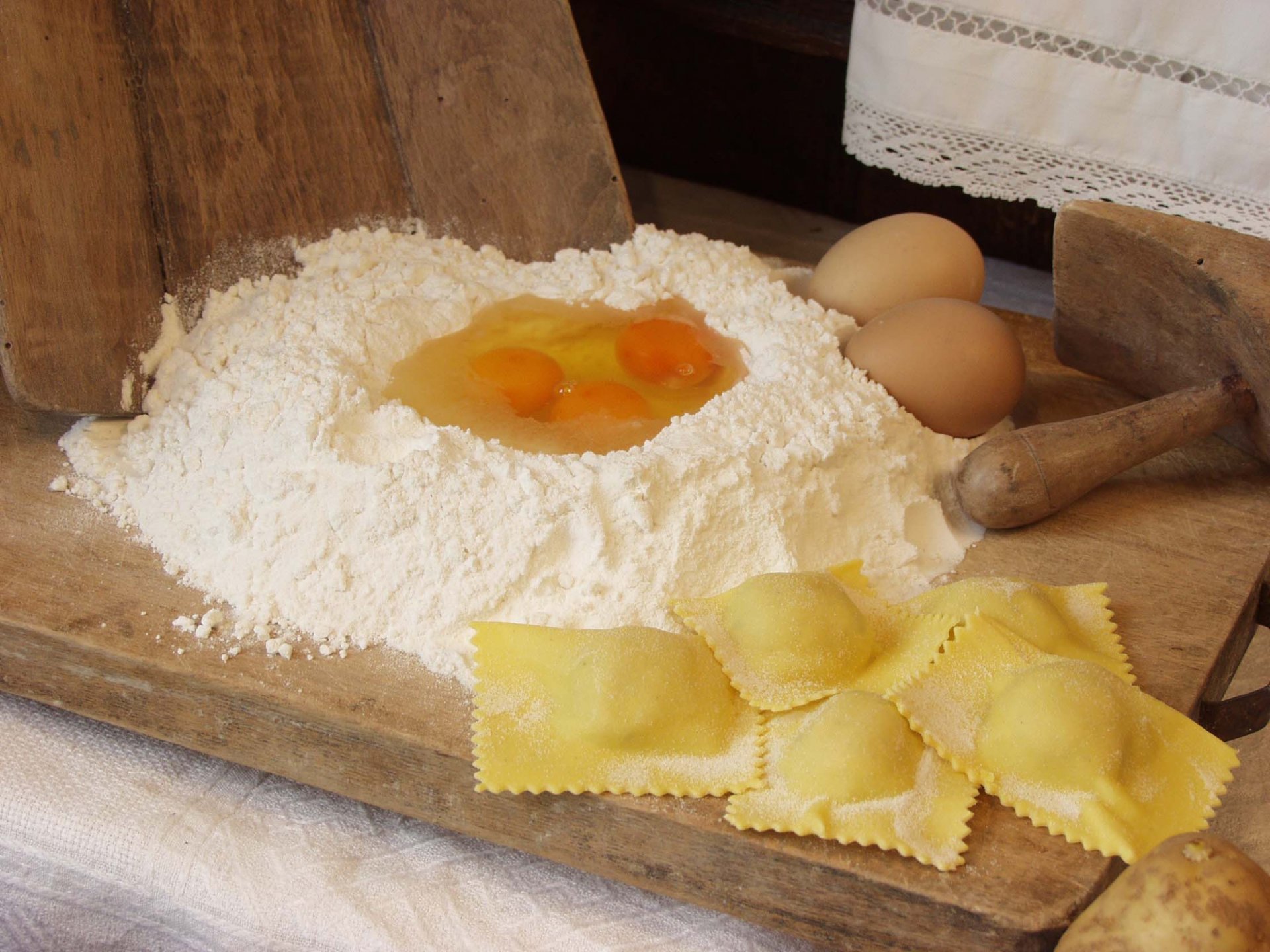 Production and sale of hand-made egg fresh pasta: tortelli di patate, ravioli ricotta, tagliatelle, pappardelle, tagliolini, ravioli with truffles, ravioli with salmon, ravioli with burrata, cappelletti mignon e cappelletti, gnocchi, tagliatelle paglia e fieno.