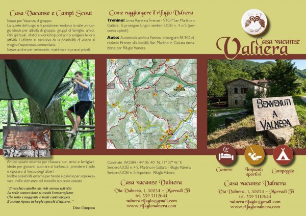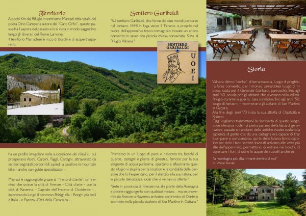 Vi ospiteremo al Rifugio, avvolti nell'appennino romagnolo, a pochi Km da Marradi città natale del poeta Dino Campana. Disponiamo sia di ampie camere che di camere più piccole. Potrete gustare piatti semplici della cucina Tosco-Romagnola, proposte tradizionali che rispettano prodotti tipici, luoghi e sapori, taglieri di salumi e formaggi, verdure e frutta di stagione. In alternative piadine o panini. Area pic-nic con barbecue per escursionisti itineranti con pranzo al sacco.