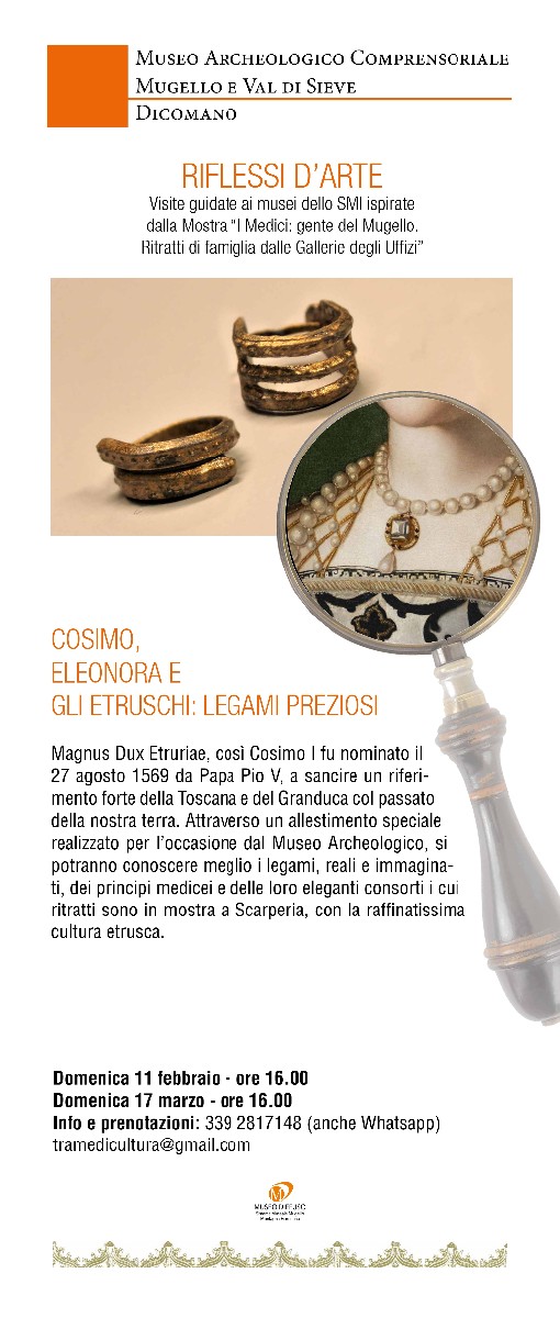 Al Museo Archeologico Comprensoriale del mugello e della Val di Sieve avranno luogo due appuntamenti di visite guidate sul tema "COSIMO, ELEONORA E GLI ETRUSCHI: LEGAMI PREZIOSI"