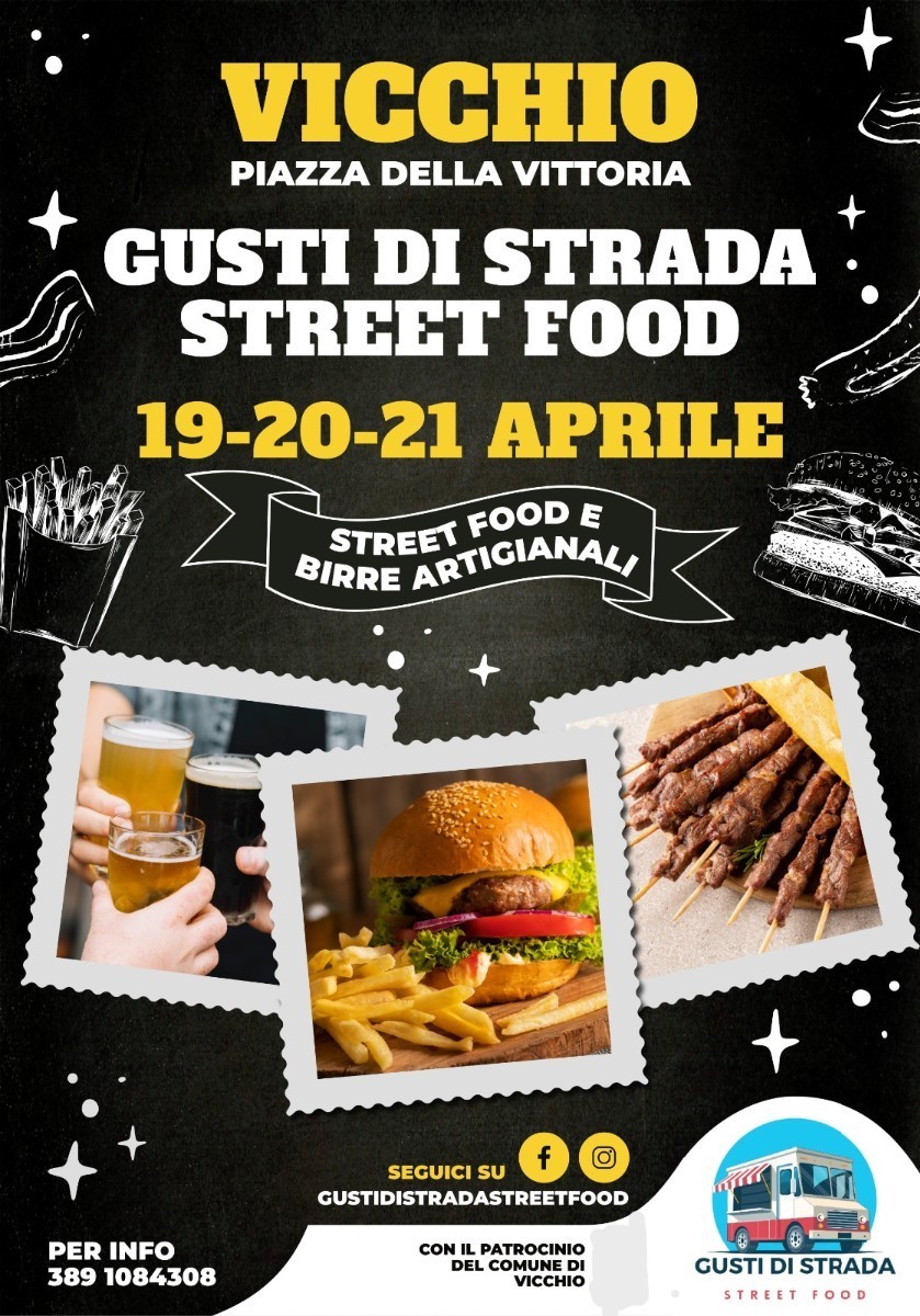 Vieni a scoprire i gusti di strada a Vicchio piazza della Vittoria dal 19 al 21 aprile.