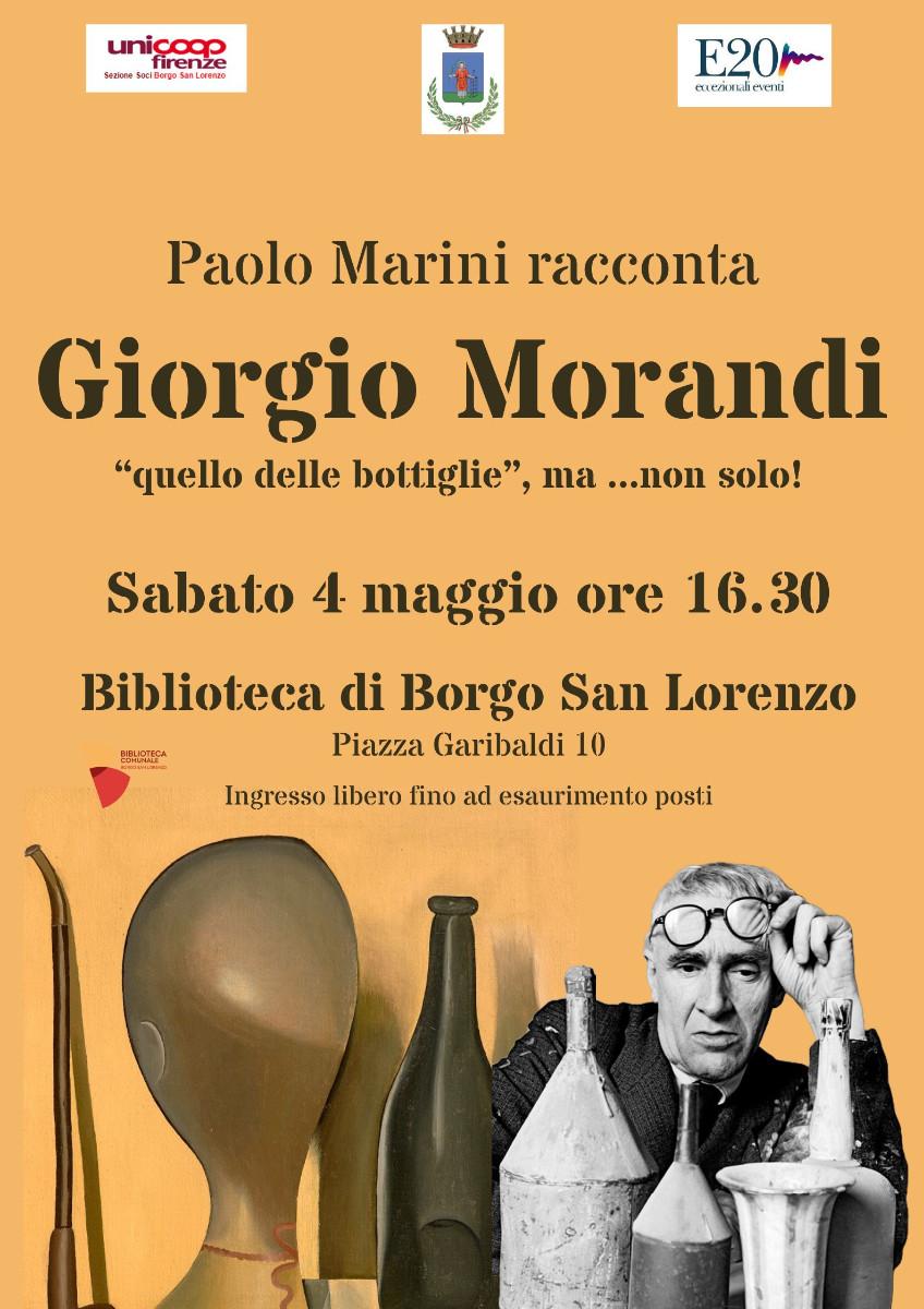 Giorgio Morandi ci ha lasciati esattamente 60 anni fa. Artista atipico, riservato, schivo, dalla quiete del suo studio – abitazione di Bologna e della sua casa di campagna a Grizzana (BO) (che oggi si chiama Grizzana Morandi) ha prodotto opere destinate all'eternità. Non è un'esagerazione. Sono opere che superano le mode e le epoche, e che tuttora suscitano attenzione e ammirazione a livello internazionale, ben oltre luoghi comuni tipo appunto “quello delle bottiglie”. Paolo Marini ne narrerà la vicenda storica con ampio e spesso sbalorditivo supporto di immagini.