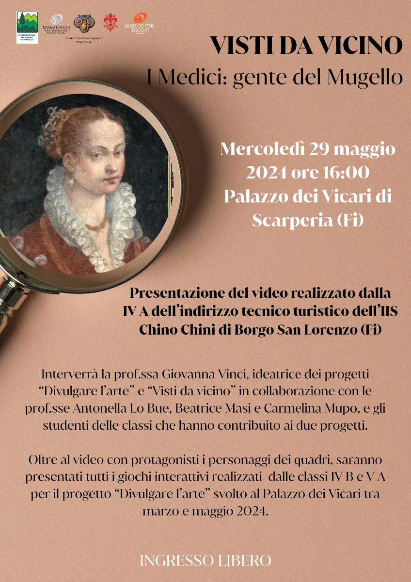 Mercoledì 29 maggio a Palazzo dei Vicari “Visti da Vicino”, iniziativa dell’IIS Chino Chini all’interno della mostra “I Medici: gente del Mugello”