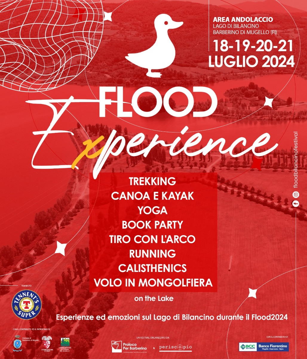 Sesta edizione di #Flood Bilancino Festival: un mondo variopinto, colorato e rumoroso, che coinvolgerà le sponde del lago di Bilancino, creando uno stretto legame tra arte e natura.