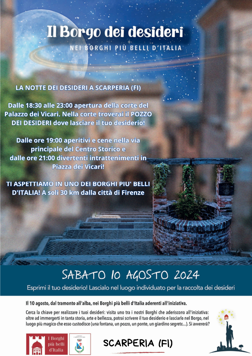 On Saturday 10 on the occasion of the Night of San Lorenzo, the village of Scarperia joins the initiative Il Borgo dei Desideri dei Borghi più belli d'Italia.