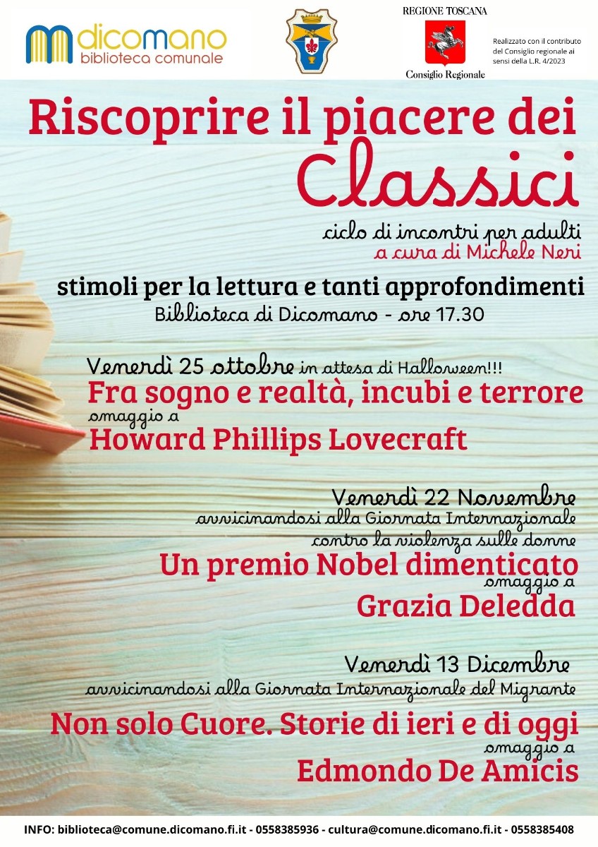 Info: biblioteca@comune.dicomano.fi.it / 0558385936 / cultura@comune.dicomano.fi.it / 0558385408