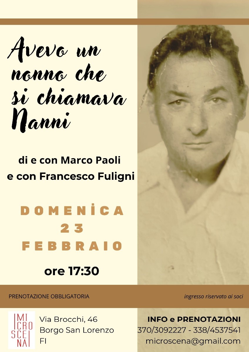 Spettacolo teatrale tratto dal libro “Il re della giostra” dello stesso autore Marco Paoli, quella del Nonno Nanni (all’anagrafe Giovanni Paoli) è una storia vera