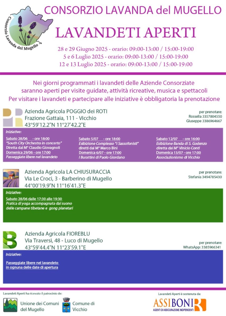 Il 28 e 29 giugno, 5, 6, 12 e 13 luglio dalle 9:00 alle 13:00 poi dalle 15:00 alle 19:00 i lavandeti aprono per visite guidate, attività ricreative, musica e spettacoli!