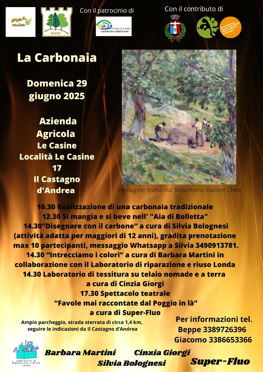 Domenica 29 giugno, a Il Castagno d’Andrea presso l’Azienda agricola Le Casine, l’associazione Foresta Modello delle Montagne Fiorentine organizza “La Carbonaia”.