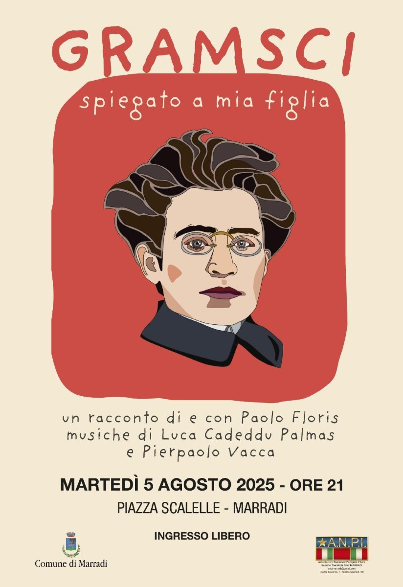 Martedì 5 agosto 2025, alle ore 21, la Piazza Scalelle a Marradi ospiterà un evento culturale da non perdere: "Gramsci spiegato a mia figlia".