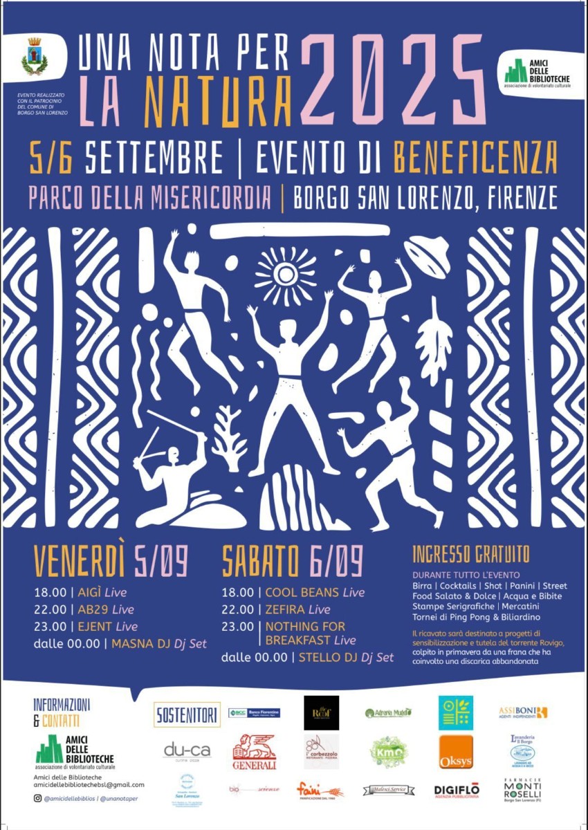 Torna anche quest'anno l'evento musicale di beneficenza "Una Nota Per..." nella sua 15esima edizione: organizzata dagli Amici delle Biblioteche, UNP 2024 si terrà al Parco Pertini (o Parco della Misericordia) nel primo week-end di settembre!