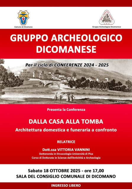 La relatrice Dott.ssa Vittoria Vannini, dottoranda in Etruscologia presso l’Università di Pisa, esplorerà il tema dell’architettura domestica e funeraria nel mondo antico, mettendo a confronto le forme, i significati e le simbologie che legavano la vita quotidiana agli spazi dedicati alla memoria dei defunti.