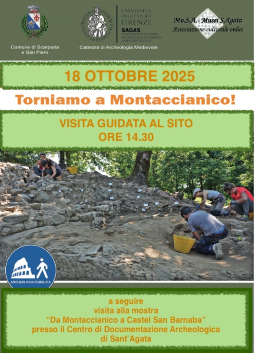 Non perdere l'occasione di partecipare alla giornata dedicata alla storia e all'archeologia di Montaccianico, organizzata dal Comune di Scarperia e San Piero in collaborazione con l'Università degli Studi di Firenze (Dipartimento SAGAS - Cattedra di Archeologia Medievale) e Mu.S.A. - Musei S. Agata Associazione culturale onlus.