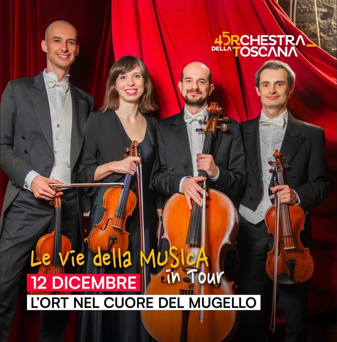 Il Quartetto dell'ORT arriva, venerdì 12 dicembre 2025 alle ore 21:00, al pubblico del Mugello con un concerto speciale ospitato nell'Oratorio di Sant'Omobono a Borgo San Lorenzo, nell'ambito dell'iniziativa Le Vie della Musica in Tour.