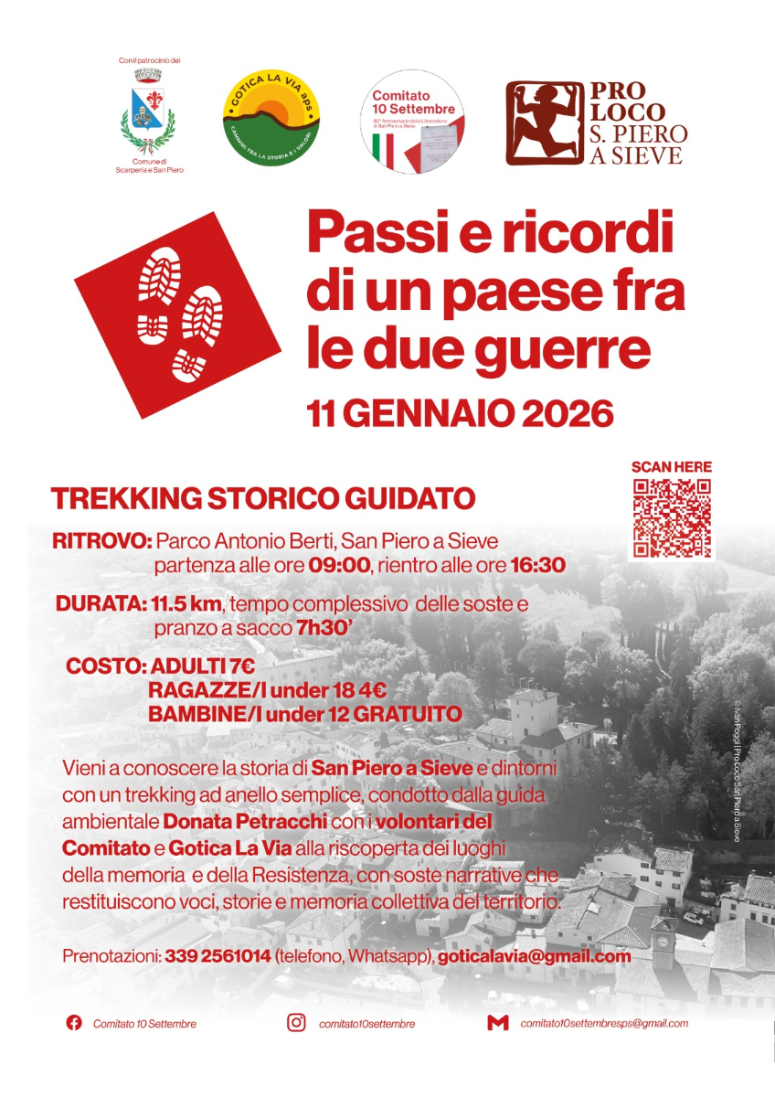 I luoghi che attraverseremo sono stati teatro di vicende legate alla Resistenza, alla lotta partigiana e alla vita quotidiana delle comunità locali durante uno dei periodi più difficili del Novecento. Attraverso testimonianze, episodi storici e memorie raccolte nel tempo dagli appassionati storici volontari del Comitato 10 Settembre di San Piero a Sieve, emergeranno le storie di uomini e donne che hanno vissuto, combattuto e resistito su questa autentica terra toscana.