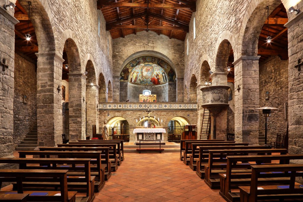 Il cuore del paese è costituito dalla sua splendida Abbazia, uno dei più importanti esempi di architettura romanica in Toscana. Costruita nel 1028 per volere del vescovo di Fiesole, Jacopo il Bavaro, l'Abbazia di San Gaudenzio venne consacrata nel 1070 dal vescovo Trasmondo. L’8 giugno del 1302 nell’Abbazia si tenne il convegno degli esuli fiorentini Ghibellini e dei Guelfi Bianchi, tra cui Dante Alighieri. Oggi la chiesa si trova sotto il Vescovo di Fiesole.