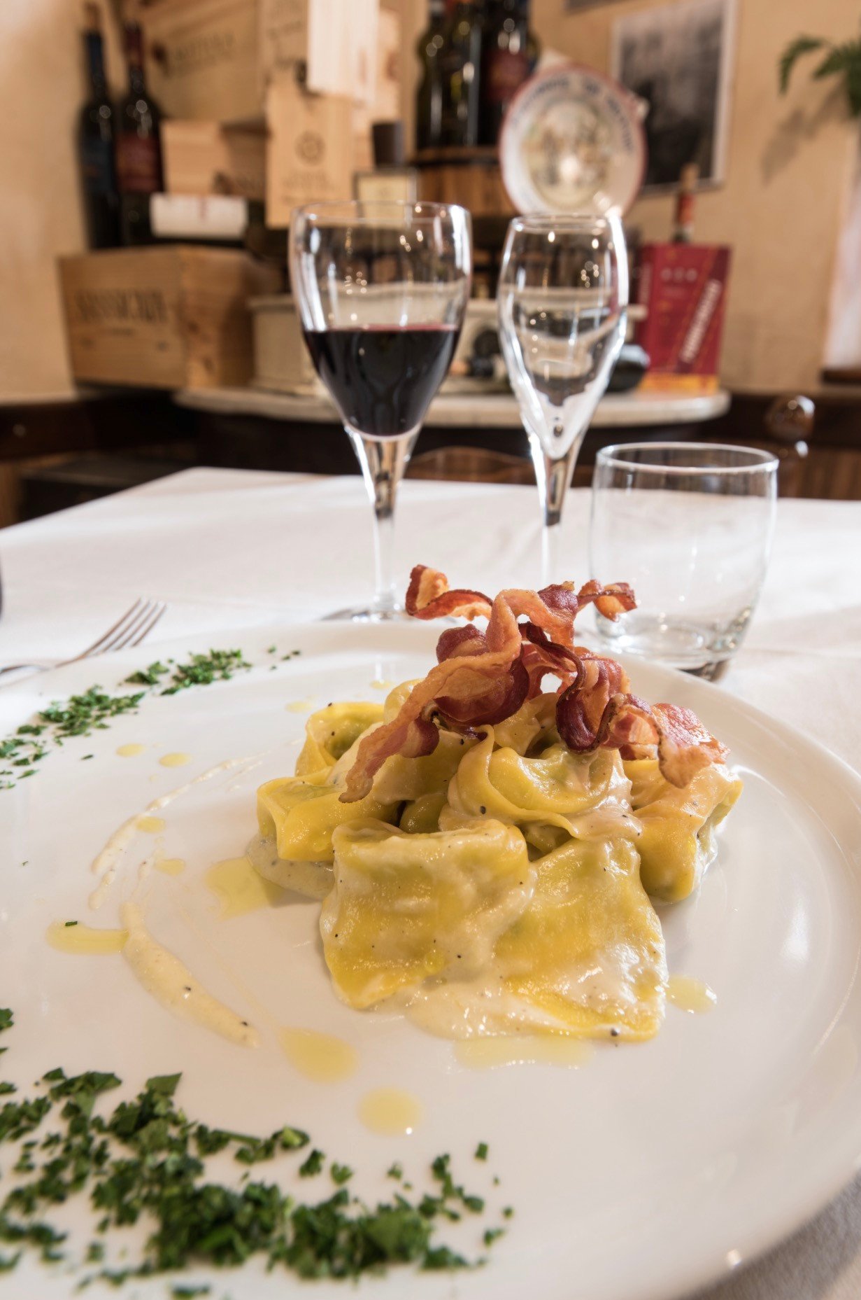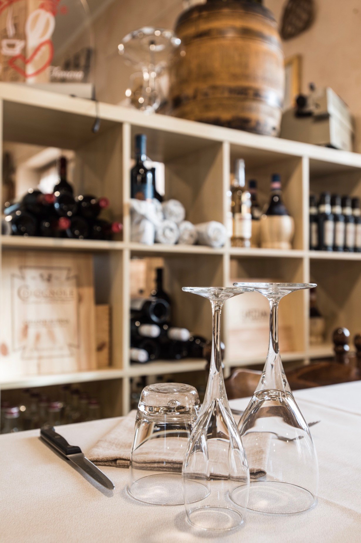 Cucina tosco-romagnola, bistecca alla fiorentina, carne alla griglia e pizza cotta nel forno a legna. Parcheggio privato, accesso disabili, tavoli all'aperto, accesso animali domestici, si accettano carte di credito (eccetto American Express) e bancomat, wi-fi, centro storico, n. coperti 60, prezzo medio 27€. Chiuso il lunedì.