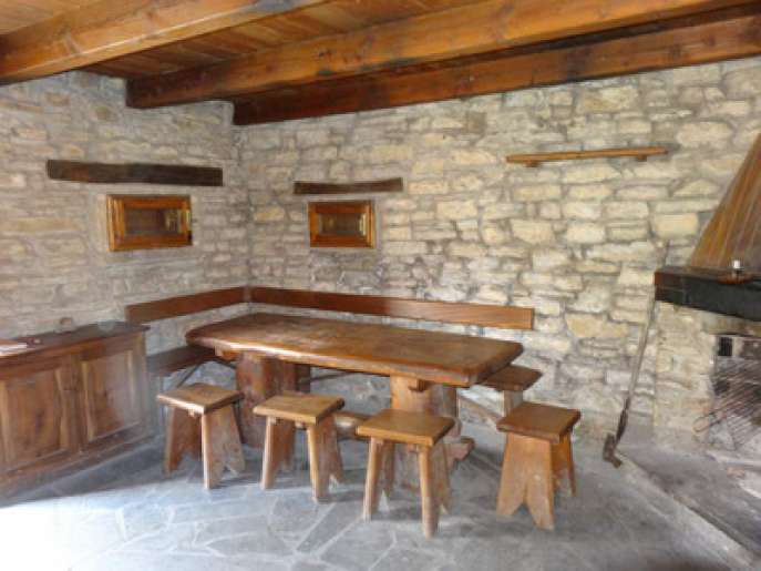 Il refettorio con caminetto accoglie gli ospiti. É dotato di cucina attrezzata, 10 posti letto e servizio igienico comune con wc e lavandino. Il rifugio è privo di corrente elettrica, ci sono due punti luce in cucina e camerata, alimentate da un impianto fotovoltaico.