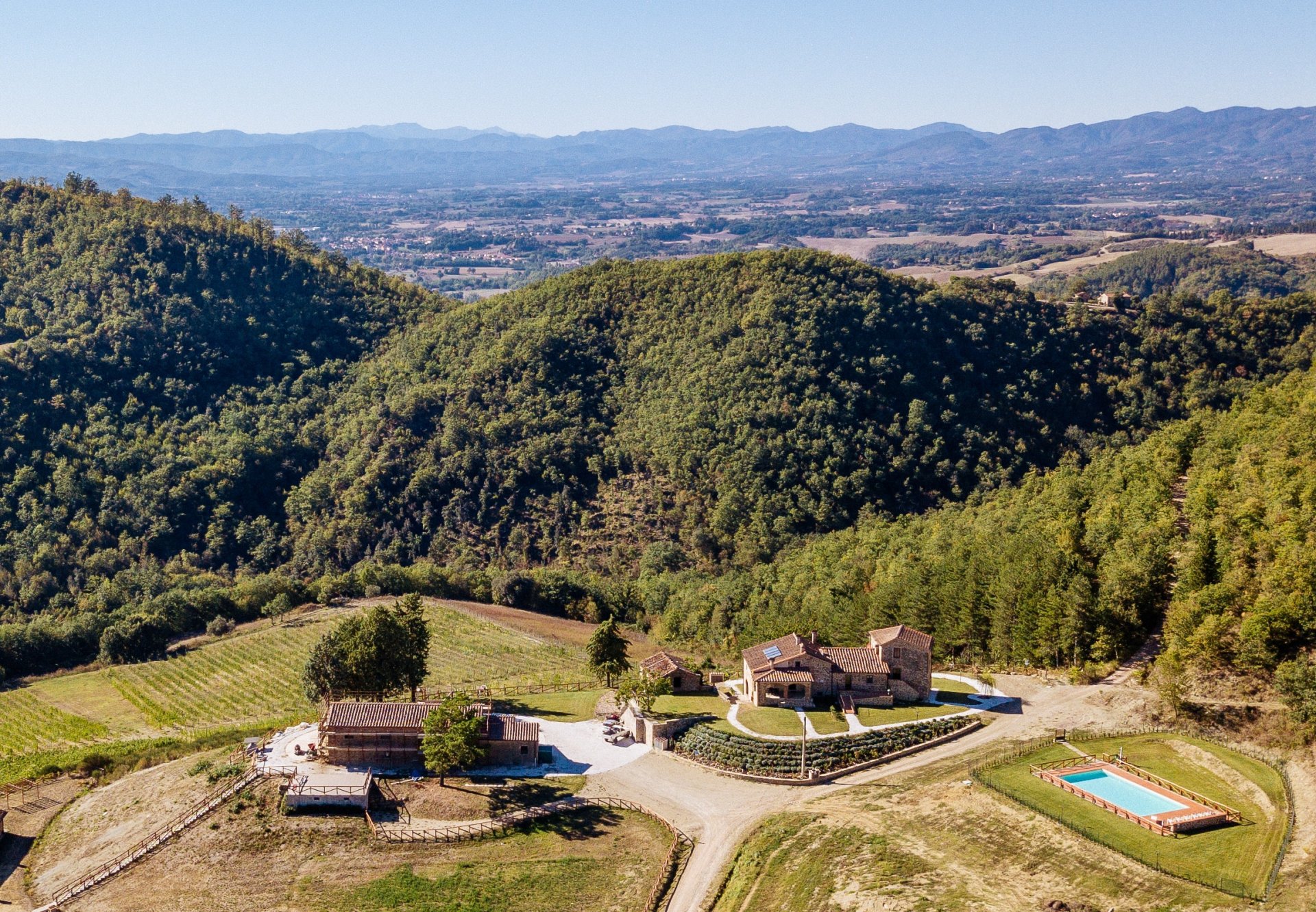 La struttura immersa nella natura tra vigneti e oliveti, dispone di ampi spazi all'aperto tra cui una naturale terrazza panoramica, la piscina e degli appartamenti per un totale di 20 posti letto che ovviamente possono essere affittati ad uso esclusivo degli inviati. La location offre dei bellissimi tramonti e lo staff è ben disponibile a trovare soluzioni per accomodare al meglio gli sposi e rendere la loro festa di matrimonio una giornata davvero speciale.